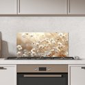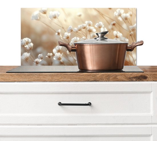 Crédence de Cuisinière en Aluminium 60x30 cm - Sauvage - Fleurs - Blanc - Écran Pare-éclaboussures pour Plaque de Cuisson - Protection Murale