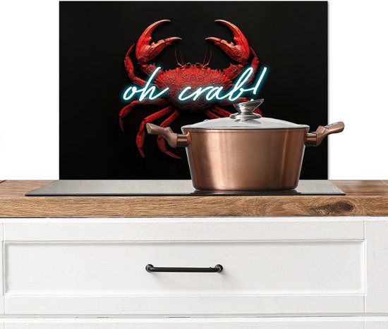 Crédence de Cuisinière en Aluminium 60x40 cm - Crabe - Rouge - Néon - Citation - Écran Pare-éclaboussures pour Plaque de Cuisson - Protection Murale