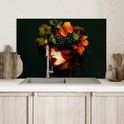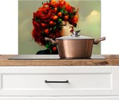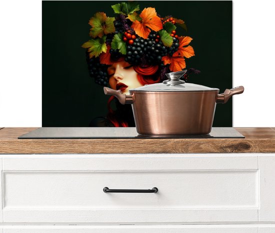 Crédence de Cuisinière en Aluminium 70x50 cm - Femme - Rouge - Vert - Raisins - Écran Pare-éclaboussures pour Plaque de Cuisson - Protection Murale