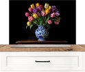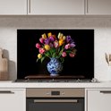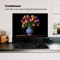 Crédence de Cuisinière en Aluminium 90x60 cm - Tulipes - Couleurs - Vase - Écran Pare-éclaboussures pour Plaque de Cuisson - Protection Murale