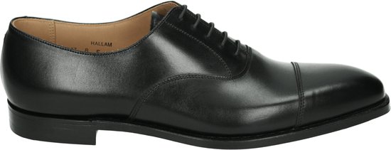Cet article est une chaussure business pour homme de la marque Crockett & Jones. Le nom du modèle est HALLAM et la couleur est noire. Le produit a une largeur E et une assise plantaire fixe. La semelle est en cuir et caoutchouc et le matériau supérieur est en cuir lisse.