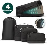 Avec les cubes d'emballage de compression, vous vous assurez également que vos vêtements peuvent être réduits en volume jusqu'à 60 %, de sorte qu'il vous reste de la place dans votre valise avant de vous en rendre compte ! (Pour ces souvenirs supplémentaires lors du voyage de retour, n'est-ce pas ?)