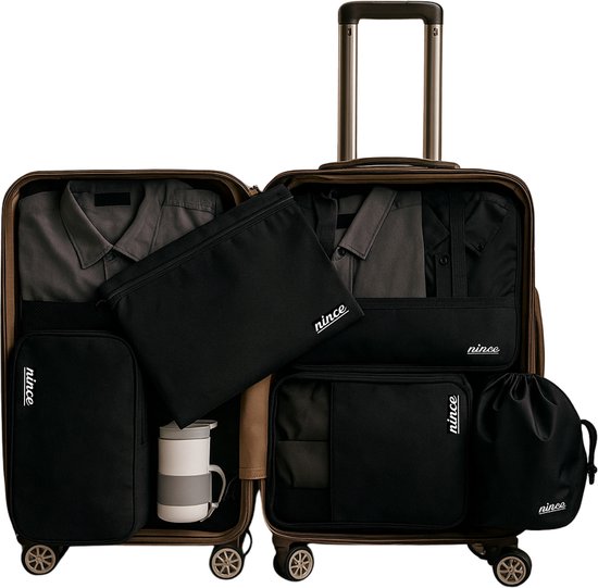 Vous partez de chez vous avec une valise parfaitement emballée. Une fois à votre adresse de vacances, le chaos revient rapidement. Quand vous devez rentrer chez vous, vous ne savez pas comment vous l'avez mis dans votre valise. C'est beaucoup plus facile avec cet ensemble pratique de Nince . Assez de poches légères en tissu solide pour maintenir l'ordre. Il existe également des sacs (plastifiés) qui sont pratiques dans votre sac de plage pour les maillots de bain mouillés. Je pense que c'est un bel ensemble et un ensemble pratique.