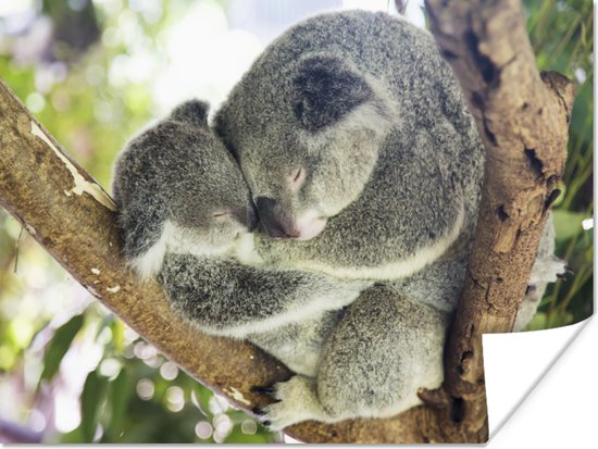 Cuddling koala mother and joey Poster 180x120 cm - Tirage photo sur Poster (décoration murale salon / chambre) / Poster Animaux XXL / Groot format!