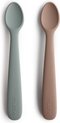 Cuillères en silicone MUSHIE |Set 2 pièces|Bleu Cambridge, Sable changeant|Bavoirs|Cuillère|Bébé|Sans BPA