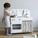 Très belle cuisine ludique pour le petit chef de la maison qui aime cuisiner pour tous ses invités. La cuisine de Cam Cam Copenhague se compose d'un four, de 2 plaques de cuisson, de 3 boutons rotatifs, de 4 boutons pour accrocher des objets, d'un évier en métal et d'un espace de rangement derrière un rideau avec un joli imprimé Cam Cam . La cuisine de jeu est fabriquée en bois durable et totalement exempte de plastique. L'évier est en métal et le rideau en 100% coton biologique. La cuisine en bois mesure 82,2 cm de haut, 75 cm de large et 30 cm de profondeur et équipée de peinture sans COV (sans composés organiques volatils). Il est disponible en plusieurs belles couleurs et peut être complété par des accessoires comme une toque, un tablier de cuisine, des gants de cuisine et des fruits/légumes en bois.