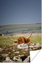 Curious Scottish Highlander poster paper 40x60 cm - Tirage photo sur Poster (décoration murale salon / chambre) / Poster Animaux sauvages