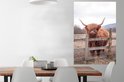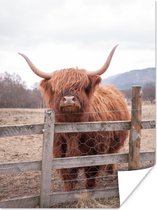 Curious Scottish Highlander poster paper 80x120 cm - Tirage photo sur Poster (décoration murale salon / chambre) / Poster animaux sauvages