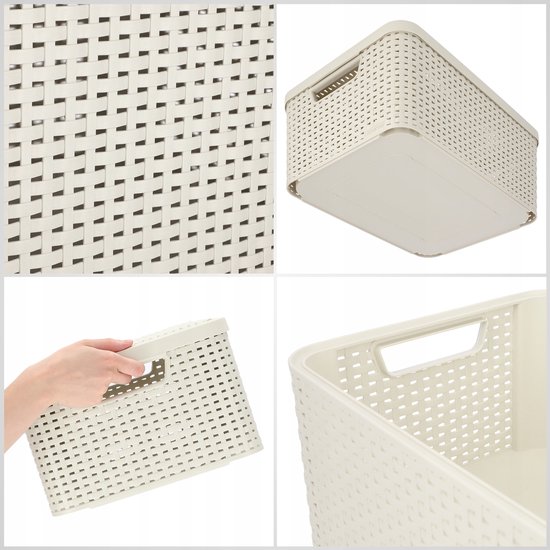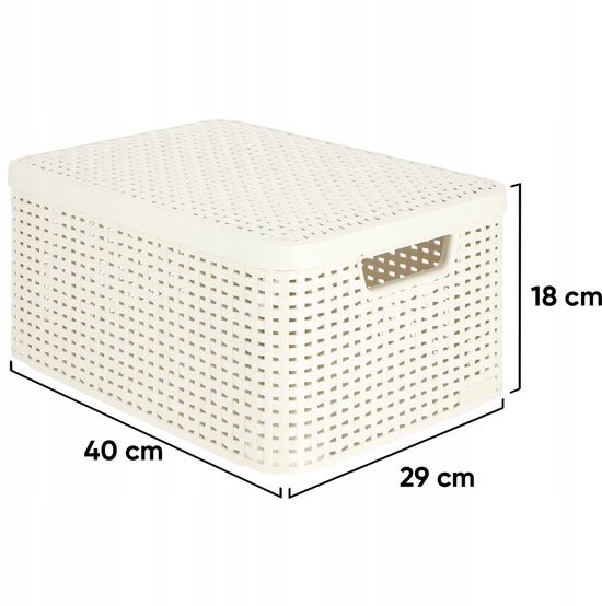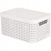 Curver Style Panier de Rangement M - avec Couvercle - 18L - 39,7x29x18,7 cm - Blanc Vintage