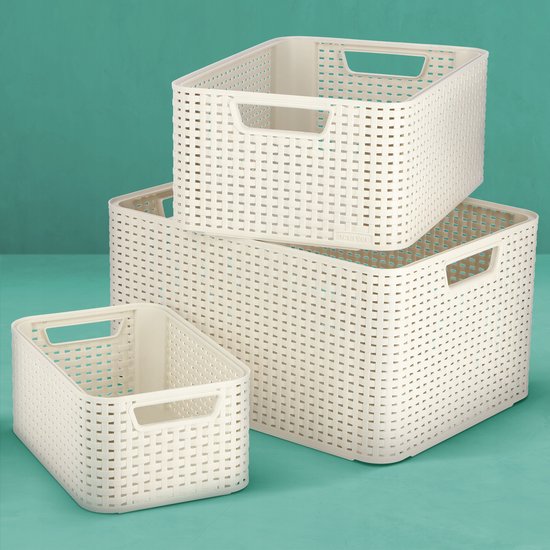 J'utilise certains de ces paniers dans l'armoire pour tout trier par panier. Jeans avec jeans, chemises avec chemise, etc. Le placard est maintenant complètement rangé, ce qui est agréable à voir et les paniers sont très confortables!