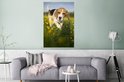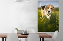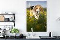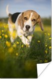 Cute Beagle se promène parmi les fleurs Poster 80x120 cm - Tirage photo sur Poster (décoration murale salon / chambre) / Poster Animaux domestiques