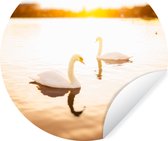 Cygne Witte sur un lac réfléchissant pendant un coucher de soleil Sticker papier peint cercle mural ⌀ 30 cm / cercle papier peint / cercle mural / cercle vivant - autocollant et coupe ronde