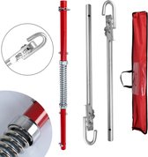 Avec la barre de remorquage, vous pouvez facilement remorquer une voiture. La barre de remorquage est utilisée pour remorquer une autre voiture avec une seule voiture. La tige de traction se compose de 3 parties faciles à glisser l'une dans l'autre. Ils sont fixés au moyen de goupilles de verrouillage. Au milieu de la barre de remorquage se trouve un ressort puissant qui absorbe tous les coups, par exemple lors du freinage.