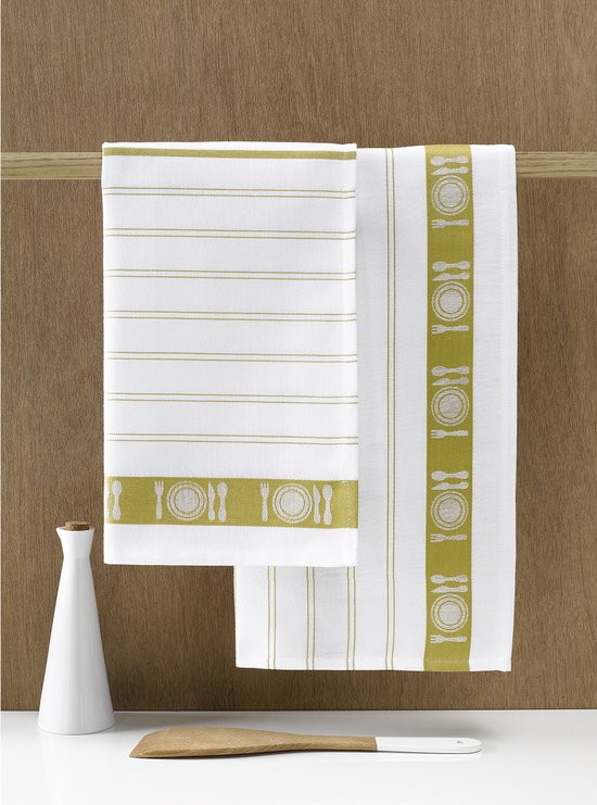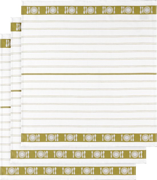 Ces trois torchons de la collection BML De Witte Lietaer ont un design épuré avec un motif à rayures et sont entièrement en coton. Les torchons ont une structure fine et un taux d'absorption élevé, ce qui signifie qu'ils absorbent rapidement l'humidité. Les dimensions sont de 65 par 65 cm et la haute qualité garantit une longue durée de vie.
