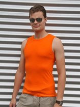 Débardeur / débardeur basique orange pour homme. Débardeur / chemise décontracté de couleur orange pour homme. Cette chemise pour homme a un col rond et un haut dos fermé. Qualité : 220 grammes. Matière: 100% coton côtelé. Tenue de fête orange, articles de supporters / fan de Hollande.