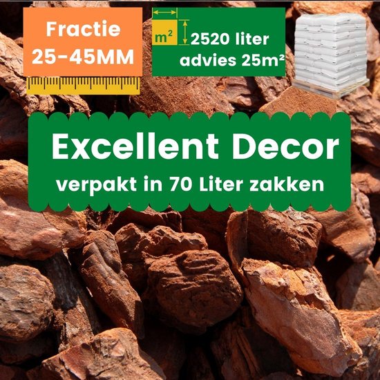 Une pure écorce de pin méditerranéen sans teneur en fibres avec une couleur rouge/marron foncé. Protège contre le dessèchement, maintient le sol exempt de mauvaises herbes et contribue au caractère naturel de votre jardin.
