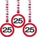 Décoration à suspendre 25 ans Panneau de signalisation 75cm 3 pièces