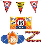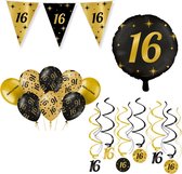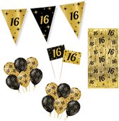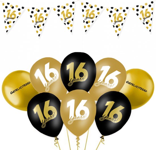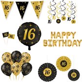 Décoration Anniversaire 16 Ans - Fête - Ballons & Guirlandes et drapeaux en Papier - Félicitations - Décoration Or & Zwart - 9 Pièces