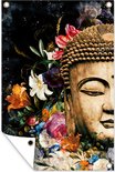 Écrit pour: Affiche de jardin Bouddha - Fleurs - Statue - 80x120 cm - Jardin