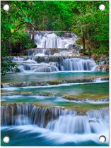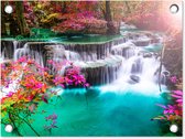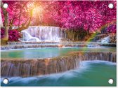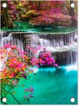 Décoration de Jardin Cascade - Soleil - Arbres - Arc-en-ciel - 30x40 cm - Toile de jardin - Poster extérieur