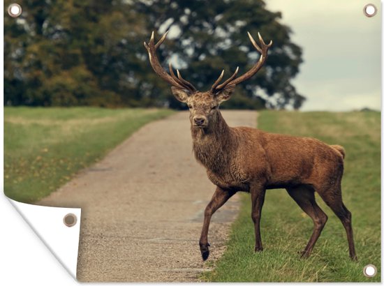 Décoration de Jardin Cerf - Vert - Herbe - 40x30 cm - Toile de jardin - Poster extérieur