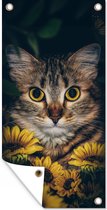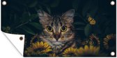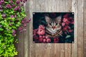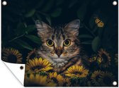 Décoration de Jardin Chat - Fleurs - Feuilles - Botanique - 40x30 cm - Toile de jardin - Poster extérieur