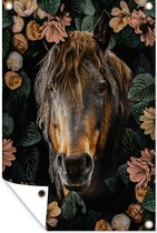 Décoration de Jardin Cheval - Tissu - Fleurs - 30x40 cm - Toile de jardin - Affiche extérieure