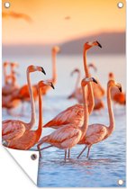 Décoration de jardin Vogel - Flamingo - Water - Coucher de soleil - Rose - 40x60 cm - Poster jardin - Toile jardin - Poster extérieur