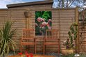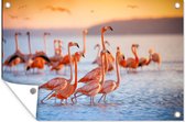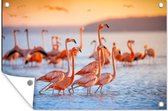 Tableau de jardin Flamingo - Tropical - Vogel - Water - Rose - 60x80 cm - Affiche de jardin - Toile de jardin - Affiche d'extérieur