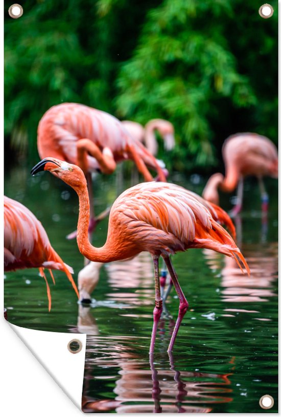 Décoration de jardin Flamingo - Animaux - Water - Rose - 40x60 cm - Poster jardin - Toile jardin - Poster extérieur