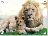 Décoration de Jardin Lions - Chasse - Portrait - 30x40 cm - Toile de jardin