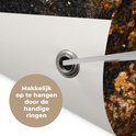 Les Posters de jardin, également appelées toiles de jardin, sont des affiches spécialement conçues pour être accrochées à l'extérieur. Cette nappe de jardin peut donc prendre une raclée. La voile Bisonyl a été utilisée pour cette affiche extérieure. Cette voile est une bâche enduite avec une belle finition. L'affiche de jardin est résistante aux UV, elle ne se décolore donc pas au soleil. Plusieurs anneaux ont été placés dans la toile pour que vous puissiez facilement l'accrocher! Jusqu'à une taille de 120x80 cm, les anneaux sont dans les coins, avec des tailles plus grandes, les anneaux viennent tous les 60 cm. Le tissu peut résister aux différentes conditions météorologiques et durera au moins 3 ans.