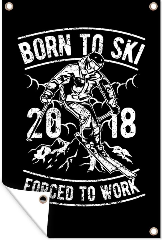 Décoration de jardin Ski - Zwart - Wit - Vintage - 40x60 cm - Affiche de jardin