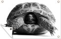 Décoration de jardin Tortue tête en bouclier devant fond blanc - noir et blanc - 60x40 cm - Poster jardin
