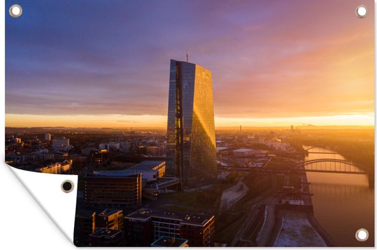Décoration de jardin Vue aérienne du coucher du soleil à la Banque centrale européenne à Francfort, Allemagne - 60x40 cm - Affiche de jardin - Toile de jardin - Affiche d'extérieur