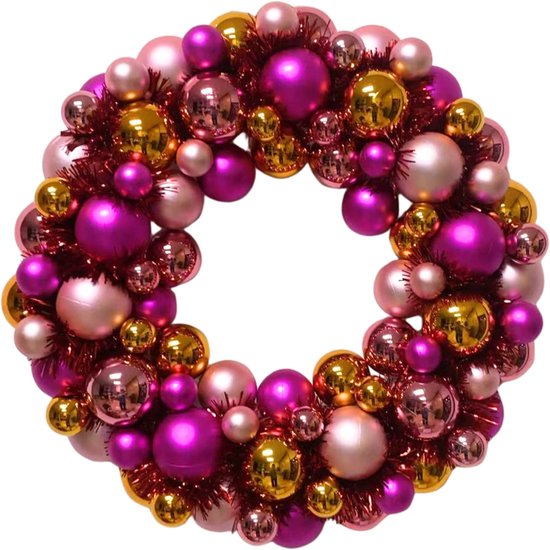 Décoration de Noël Housevitamin – Couronne de Noël en Boules de Noël – Plastique – Rose/Orange – 34x10 cm – Luxe & Incassable – Couronne de Noël Colorée