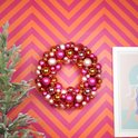CONSEIL DE STYLE : Combinez la couronne de Noël rose/orange avec le sapin de Noël en boules de Noël Housevitamin assorti pour un look joyeux et complet. Vous préférez un peu plus de glamour? Ajoutez un ruban en satin dans les tons or, violet ou vert émeraude pour un Noël Glam instantané!