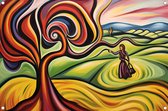 Décoration murale arbre abstrait - Peintures d'arbres - Peinture sur toile Nature - Décoration murale chambre d'enfant - Peinture sur toile - Oeuvre 90x60 cm