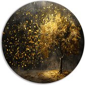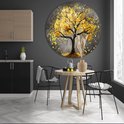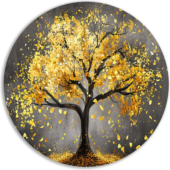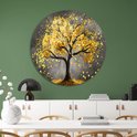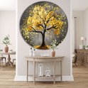 Décoration murale arbre rond - Tableau rond nature - Plaque murale feuilles - Or - Tableaux ruraux - Bol mural - Accessoires chambre cercle mural forex 100x100 cm