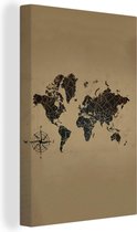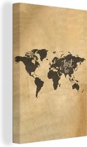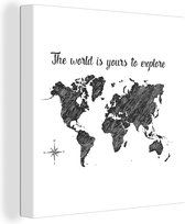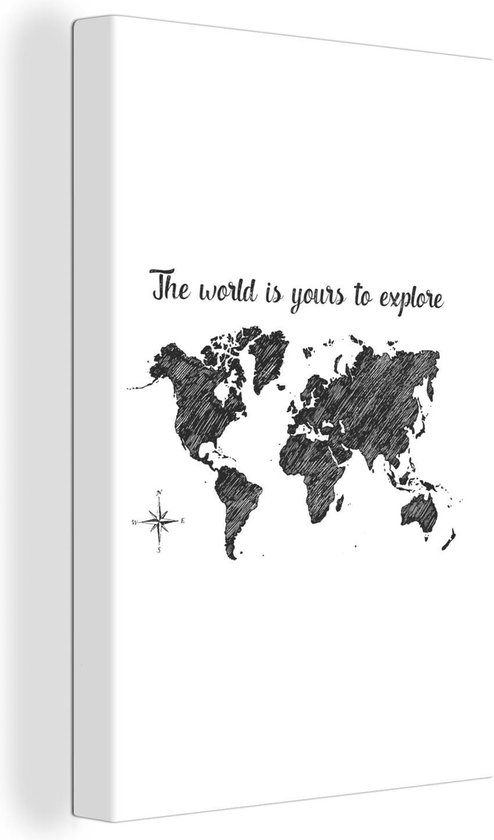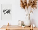 Décoration murale Carte du Wereldkaart - Citations - Zwart - Wit - Toile - 20x30 cm