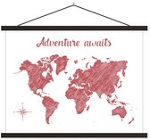 Décoration murale - Carte du Wereldkaart - Corde - Beige - Affiche scolaire - 40x30 cm
