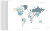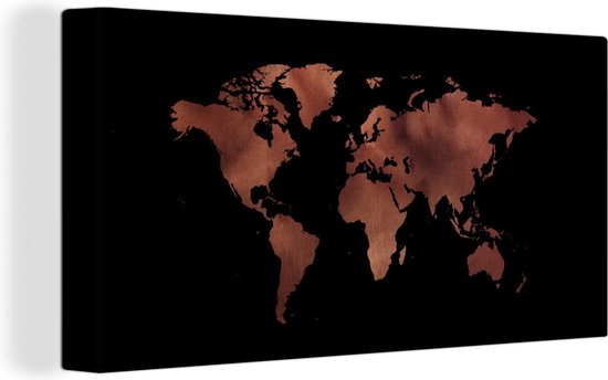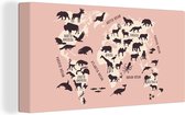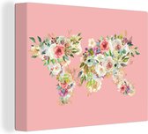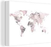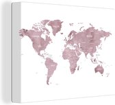 Décoration murale Carte du Wereldkaart - Cuir - Rose - Toile - 40x20 cm