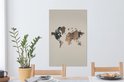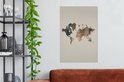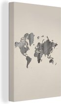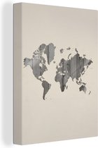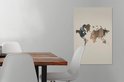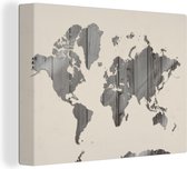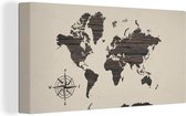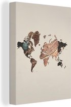 Décoration murale Carte du Wereldkaart - Planche de bois - Marron - Toile - 60x90 cm