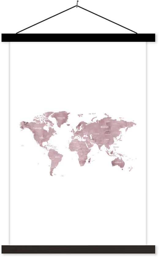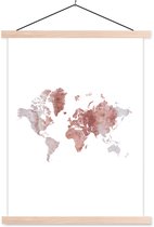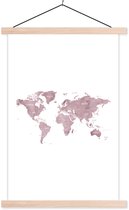 Décoration murale - Carte du Wereldkaart - Rose - Marbre - Affiche scolaire - 40x60 cm