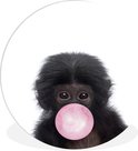 Décoration murale - Cercle mural - Singe - Chimpanzé - Chewing- Animaux - Animaux - Rose - Filles - Garçons - Décoration chambre enfant - 90x90 cm - Plastique