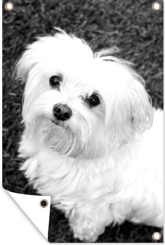 Décoration murale Chien maltais levant les yeux - noir et blanc - 120x180 cm - Affiche jardin
