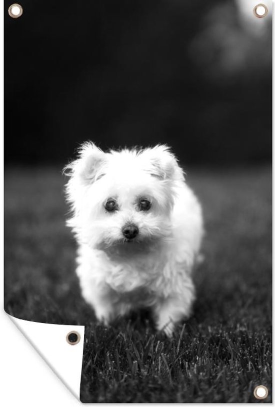 Décoration murale Chien maltais sur pelouse - noir et blanc - 120x180 cm - Affiche jardin
