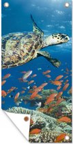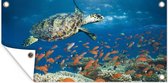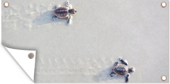 Décoration murale d'extérieur Deux tortues - 160x80 cm - Toile de jardin - Poster extérieur