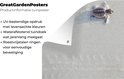 Les Posters de jardin, également appelées toiles de jardin, sont des affiches spécialement conçues pour être accrochées à l'extérieur. Cette nappe de jardin peut donc prendre une raclée. La voile Bisonyl a été utilisée pour cette affiche extérieure. Cette voile est une bâche enduite avec une belle finition. L'affiche de jardin est résistante aux UV, elle ne se décolore donc pas au soleil. Plusieurs anneaux ont été placés dans la toile pour que vous puissiez facilement l'accrocher! Jusqu'à une taille de 120x80 cm, les anneaux sont dans les coins, avec des tailles plus grandes, les anneaux viennent tous les 60 cm. Le tissu peut résister aux différentes conditions météorologiques et durera au moins 3 ans.