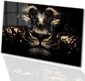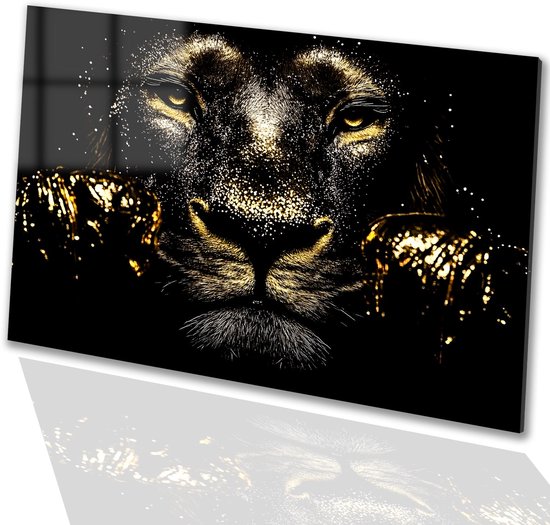 Décoration murale de Luxe lion doré - Peinture lion sur verre - Art or - Hyperréalisme - Acrylique - Décoration murale - verre acrylique 105x70 cm